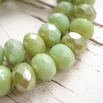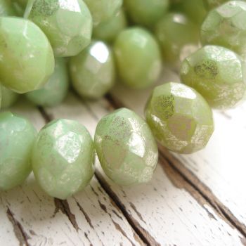 6x8mm fire polished gemstone cut rondelle Czech glass bead - Honeydew green with a mercury silver coat Pack of 10 beads