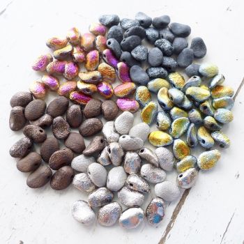 6x8mm pressed glass tulip petal bead with an etched finish - Jet Etched Argentic full coat Pack of 20