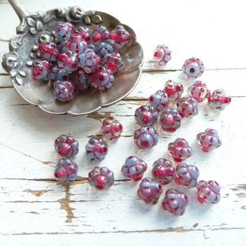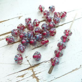 6mm Czech glass fizgig spacer bead - crystal blue maroon Pack of 15