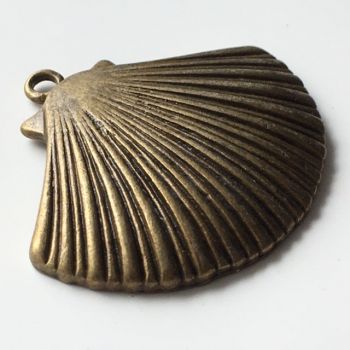 Large scallop shell pendant - Antique brass finish