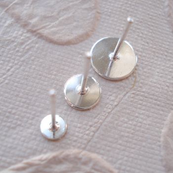 8mm flat stud base for you to attach beads and cabochons with a rubber earring back - silver plated