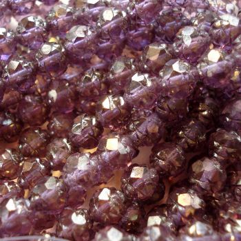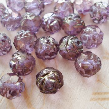 7 x 8mm Rosebud fire polished bead - Transparent amethyst with gold wash