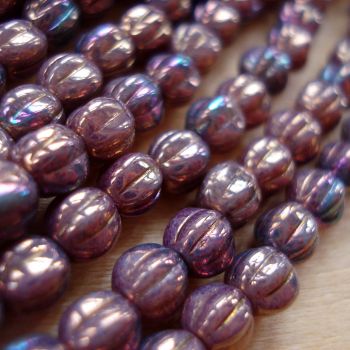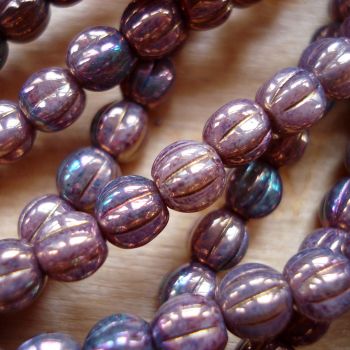 5mm round Czech glass melon bead - Opaque bronzed smoke lustre - a beautiful new colour, a smokey bronze with a hint of pink Pack of 25