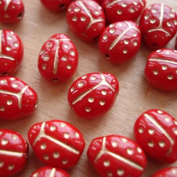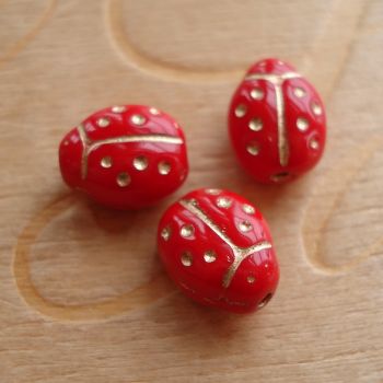 Pressed glass ladybird bead - Opaque red with gold wash.
