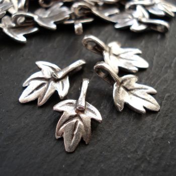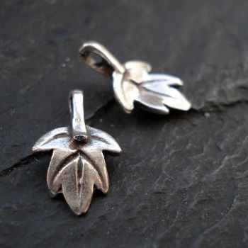 Leaf charm, small pendant - Antique silver