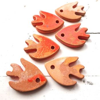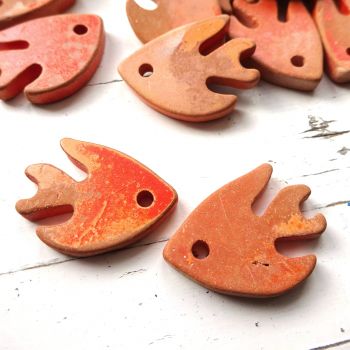 Greek ceramic 27 x 20mm fish pendant with a matte finish - Salmon orange Pack of 2 fish