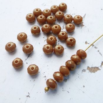 Czech glass fire-polished gemstone cut rondelle donut bead - Golden spice
