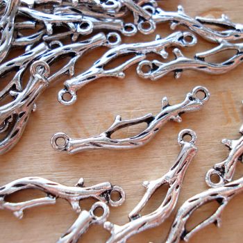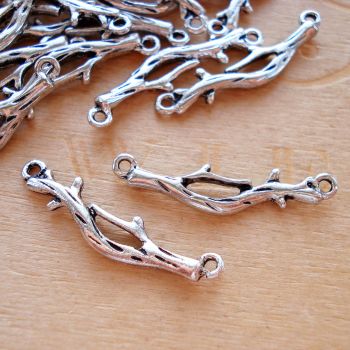 32mm double sided branch connector - antique silver plate.