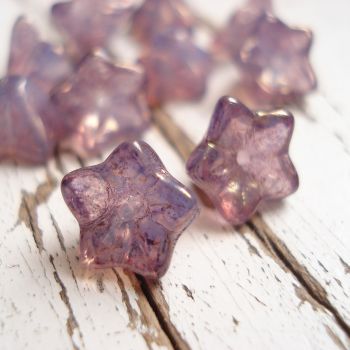6x9mm pressed glass 5 petal star flower - Lustre lilac opalite Pack of 10 flowers
