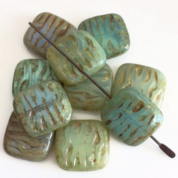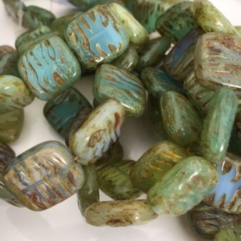 15 x 15mm square table cut beads - Aqua mix with purples, greens and blues with picasso finish Pack of 5