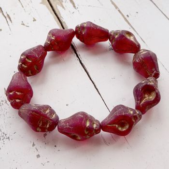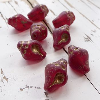 Czech glass conch shell bead - Matte red with an antique gold wash