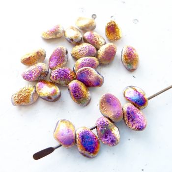 6x8mm pressed glass tulip petal bead with an etched finish - Crystal Etched Sliperit full coat Pack of 25