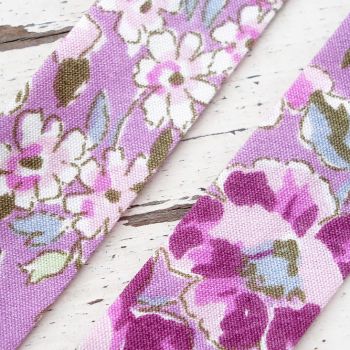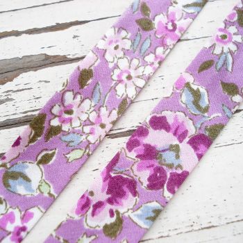 18mm floral patterned bias binding - Lilac base with mixed colour flowers